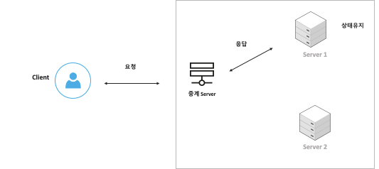 아래와 같이 Stateless 구조는 클라이언트와의 세션 정보가 저장되지 않으므로, Server1으로 요청이 와도 Server1으로 응답이 다시 나간다는 보장은 없다.