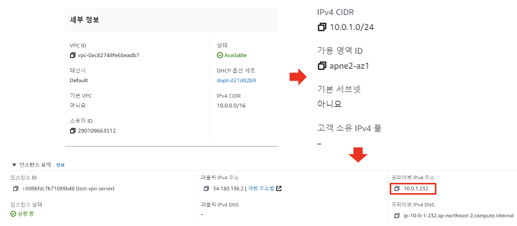 (여기서는 10.0.0.0/16영역의 VPC를 생성하고 10.0.1.0/24의 서브넷을 생성하여 10.0.1.0/24영역대로 서버를 만들었다.)